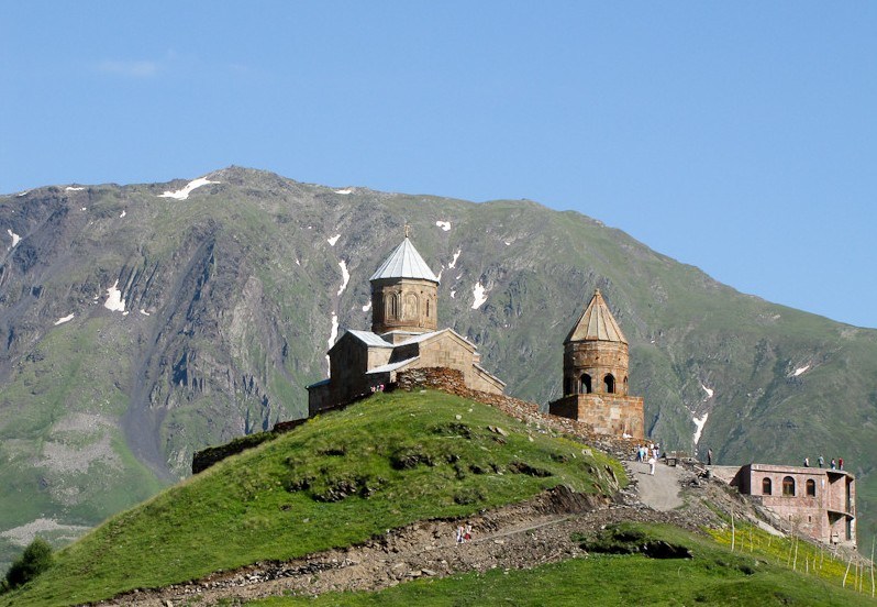 Свадьба проходила в Грузии, в деревне Гергети, где на высоте 2170 метров располагается знаменитая, построенная в 14-м веке, Троицкая церковь.