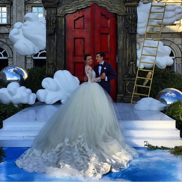 Не удивительно, что у такой творческой пары и торжество было соответствующим. Из своей свадьбы ребята сделали настоящую сказку! Молодожены организовали праздник в подмосковной усадьбе «Жаворонки», где с помощью профессиональных дизайнеров и организаторов смогли воссоздать атмосферу сказки «Алиса в стране чудес».