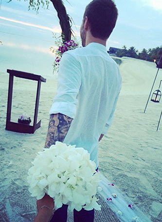 Отменив гламурную церемонию в столице, пара уехала на Мальдивские острова. К ним присоединились и некоторые родственники, что уже могло навести на догадки о планируемой церемонии. И вот, первые снимки не заставили себя долго ждать. Хотя о том, что это именно свадьба говорит лишь букет невесты и лаконичная подпись: «Я согласна». Все остальное невеста пока держит в секрете.