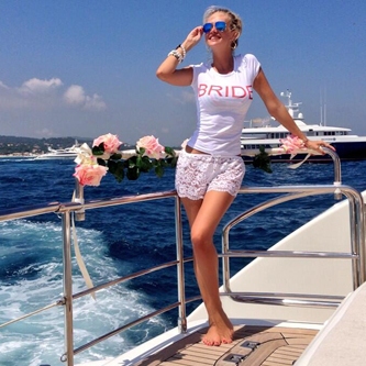 Яхту, на которой Вика веселилась с подругами, по-свадебному украсили цветами, шарами и гирляндами. Фотографии с девичника телезвезда не скрывала и с удовольствием выкладывала свои снимки то в белоснежном купальнике, то в белых кружевных свадебных шортах и футболке с надписью Bride (невеста).