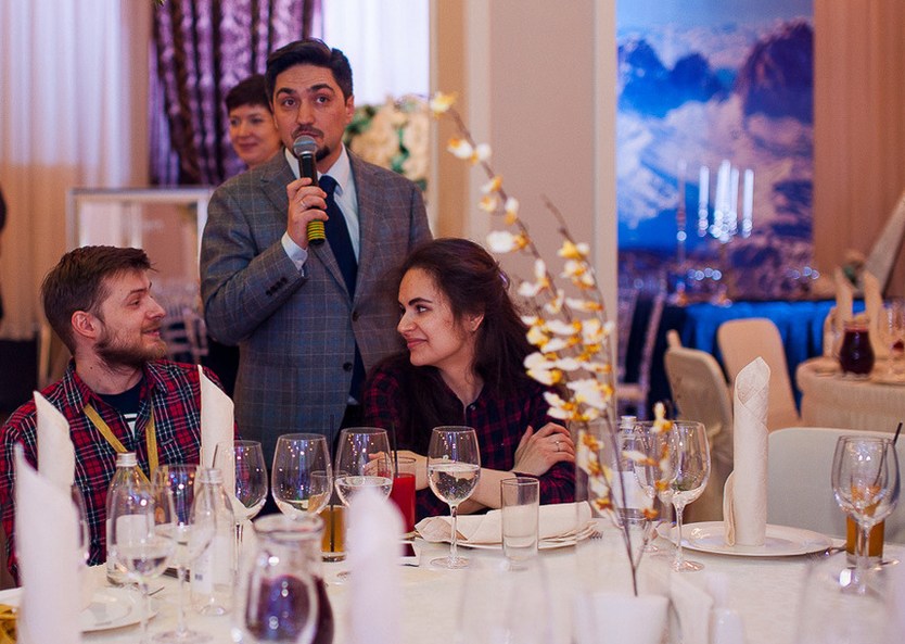 Харизматичные ведущие задавали настрой всему праздничному вечеру, а яркие номера артистов не давали скучать гостям. Одним из самых зажигательных конкурсов можно отметить танцевальный батл между присутствующими женихами и невестами – состязание выдалось по-настоящему жарким.