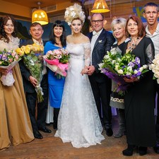 Свидетельницей со стороны невесты была актриса Нонна Гришаева, свидетелем – Иосиф Кобзон, ради свадьбы подруги прервала гастроли Екатерина Шаврина. Подарки у звезд были тоже звездными, так Костя Цзю преподнес молодоженам новенький автомобиль, а Роза Сябитова подарила длинную норковую шубу с соболиной пелериной. Гости в свою очередь также получили подарки от молодоженов: на выходе всем вручали подарочные наборы с шампунями от бренда Lovely by Egomania&ELena Lenina. Но из всех гостей особенно повезло ведущей программы «Давай поженимся» Розе Сябитовой, сваха поймала букет невесты. Так что, согласно примете, будем ждать новую звездную свадьбу.