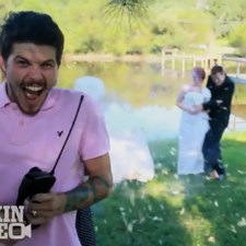 Свадебный торт взорвался рядом с молодоженамиОдин из гостей свадьбы решил подшутить над молодоженами. -