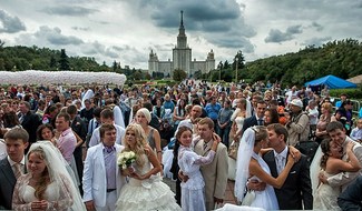 Свадебное путешествие в Грецию - подарок в "день невест"Событие произошло напротив смотровой площадки Воробьевых гор, где собралось более ста пар молодоженов. В концерте приняли участие звезды нашумевшего мюзикла «Mamma Mia!» -