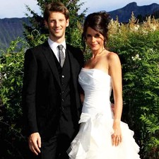 Свадьба автогонщика «Лотуса» и спортивного журналистаРомен Грожан женился на своей подруге Марион Джолльз. -