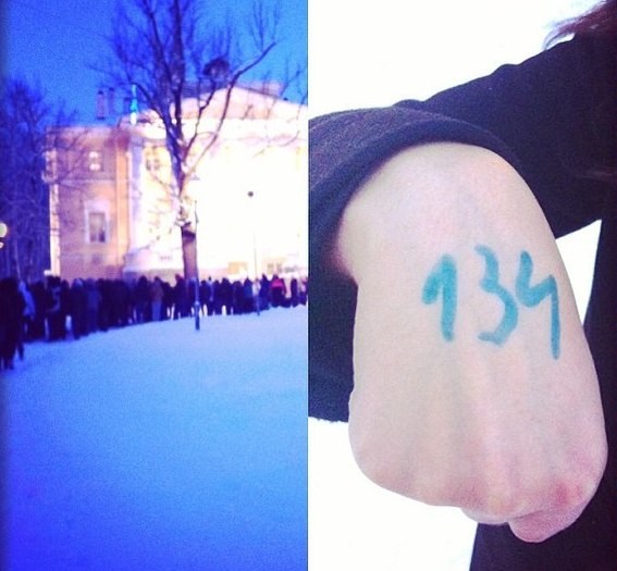 Чтобы не было путаниц и выяснений отношений, номер очереди писали маркером на замерзших руках.
