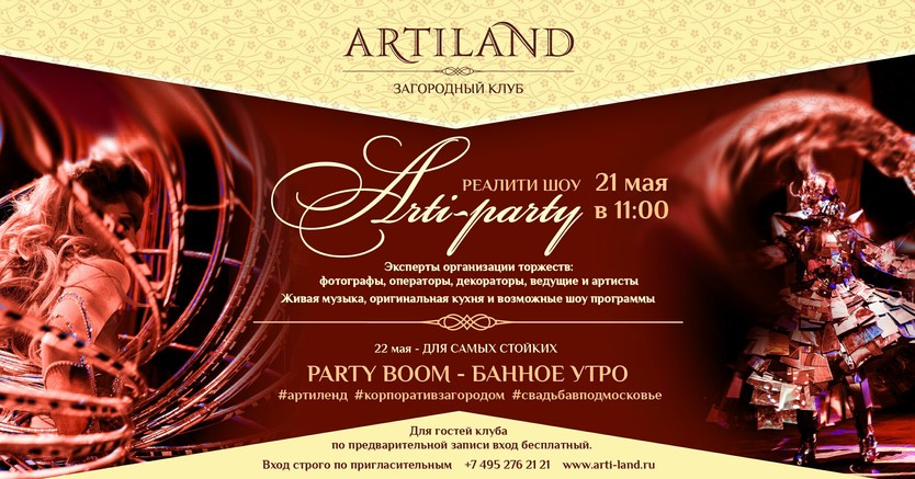 21 мая (воскресенье) с 11:00 до 17:00 в загородном клубе ARTILAND состоится реалити-шоу ARTI-PARTY.