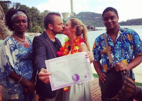 Скромное торжество было организовано по законам Сейшельских островов, а после церемонии молодоженам вручили сертификат, свидетельствующий о том, что их брак имеет юридическую силу.