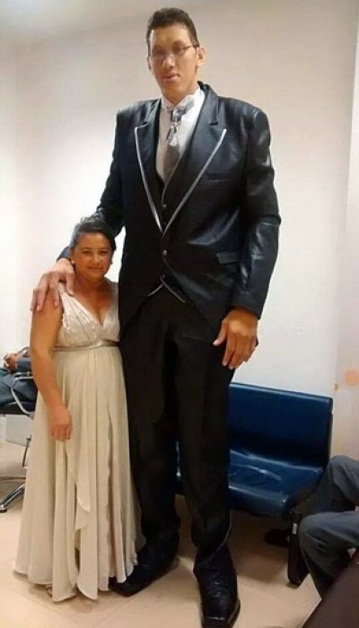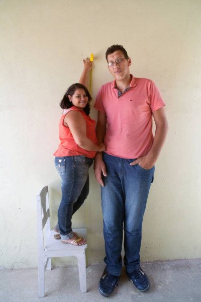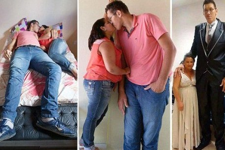 На днях Джолисон Фернандес да Силва (Joelison Fernandes da Silva), коренной бразилец, рост которого достигает 234 сантиметров, женился на крошечной, по его меркам, девушке.