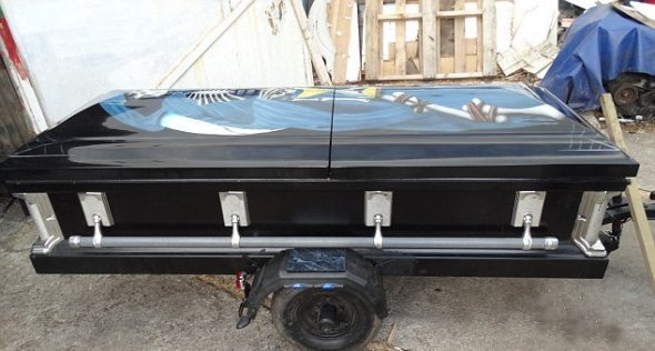 Тем более, что приобрести этот весьма необычный атрибут для свадьбы невесте не составило особого труда - женщина долгое время работала в бюро ритуальных услуг. Счастливую невесту к алтарю «доставил» ее родной брат, повергнув в шок всех приглашенных.