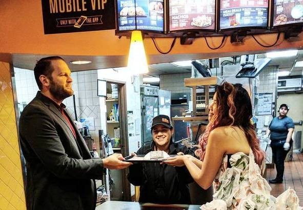 Американская сеть ресторанов быстрого питания Taco Bell устроила конкурс на право организовать свадьбу в одном из заведений. Для этого нужно всего ничего – доказать организаторам конкурса свою истинную любовь. И с этим у Дианты, как понимаете, проблем точно не возникло. Идея у девушки родилась мгновенно.