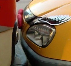 Свидетели, как и положено, расписались в свидетельстве о регистрации брака и помогли им обменяться автомобильными покрышками золотого цвета. И, конечно же, не обошлось без трогательного поцелуя передними бамперами. А после официальной части все гости отведали свадебного торта.