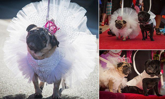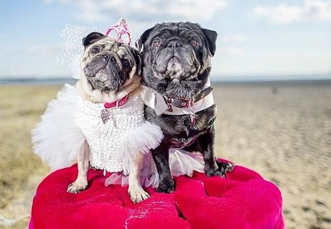 «Сладкая парочка» прожила вместе порядка семи лет. А вот сейчас хозяева питомцев решили оформить их отношения официально. Но не все так просто! Пышная собачья свадьба проводилась для поддержки компании Pug Rescue and Adoption Victoria, занимающейся спасением бездомных животных. Все деньги с проданных на мероприятие билетов, которые разошлись в интернете, как горячие пирожки, были переведены в фонд защиты животных.