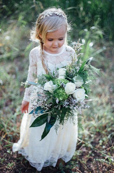 Очень красивые и очень маленькие жених и невеста прекрасно вжились в отведенные им роли. Невеста была одета в нежное кружевное платье с длинными рукавами. Ее белокурые локоны были заплетены в длинную косу. В руках малышка держала изящный свадебный букет из роз.