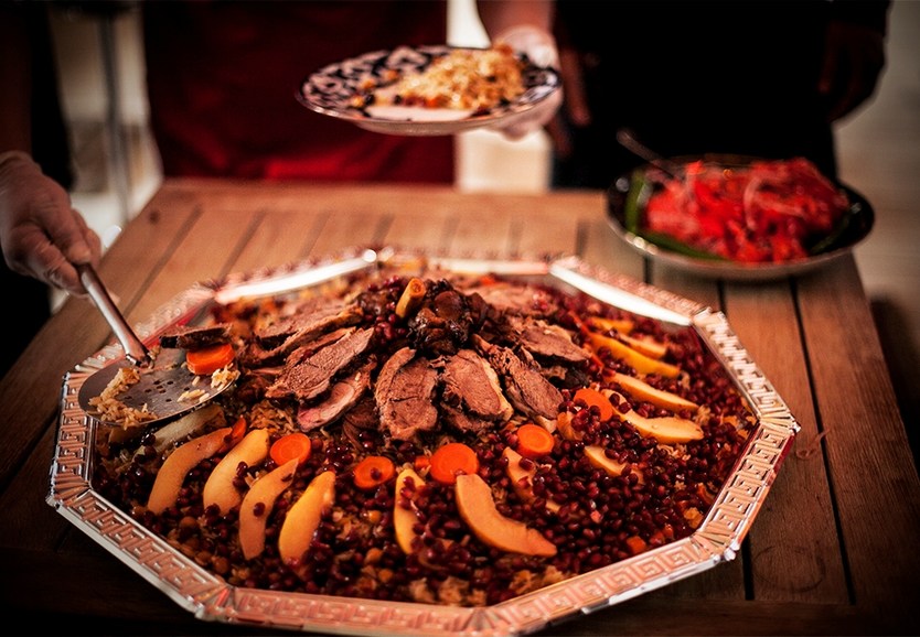Еще один сюрприз от устроителей – настоящий мастер-класс по приготовлению плова с гранатом. Плов на свадьбе – традиция, уходящая в глубокое прошлое.