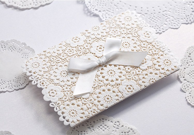 Лазерная вырезка – тоже интересный вариант создания свадебного приглашения. Они получаются нежными и романтичными.