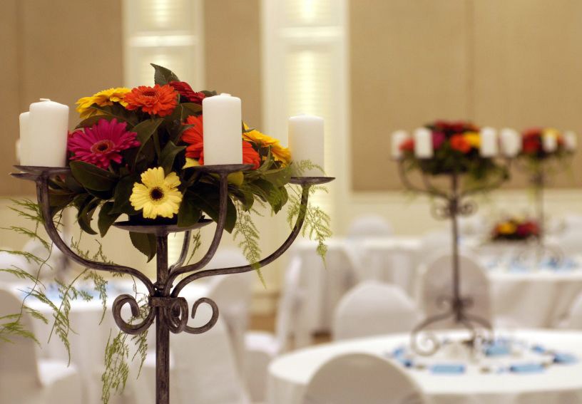 Канделябры, светильники, свечи в подсвечниках создадут неповторимую романтическую обстановку. Внесите нотку лирики и аристократии, расставив подсвечники на столах.