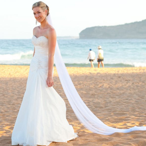 Для стройных и высоких женщин отлично подойдет многослойная фата, опускающаяся каскадом с плеч красавицы-невесты. Ее можно подобрать достаточно длинной, но не стоит допускать того, что бы она волочилась по земле. Плюсом многослойной фаты является то, что верхний слой, как правило, достаточно короткий и можно использовать его для сокрытия лица невесты от лишних глаз. А вот в недостатки подобных моделей можно отнести то, что от ветра многоярусную фату растреплет и её придется часто поправлять.