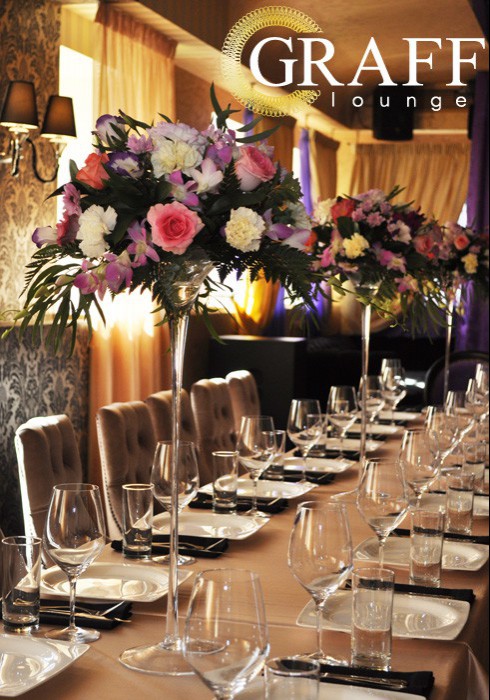 Ресторан Graff lounge расположился в историческом центре города. Для Вас изысканное пространство ресторана, уникальные возможности шоу — программы, и работа слаженной команды профессионалов. «Свадьбы под ключ».