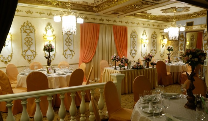 Ресторан поразит воображение аристократическим шиком своих интерьеров. Дизайн в стиле ампир не оставит Вас равнодушными!