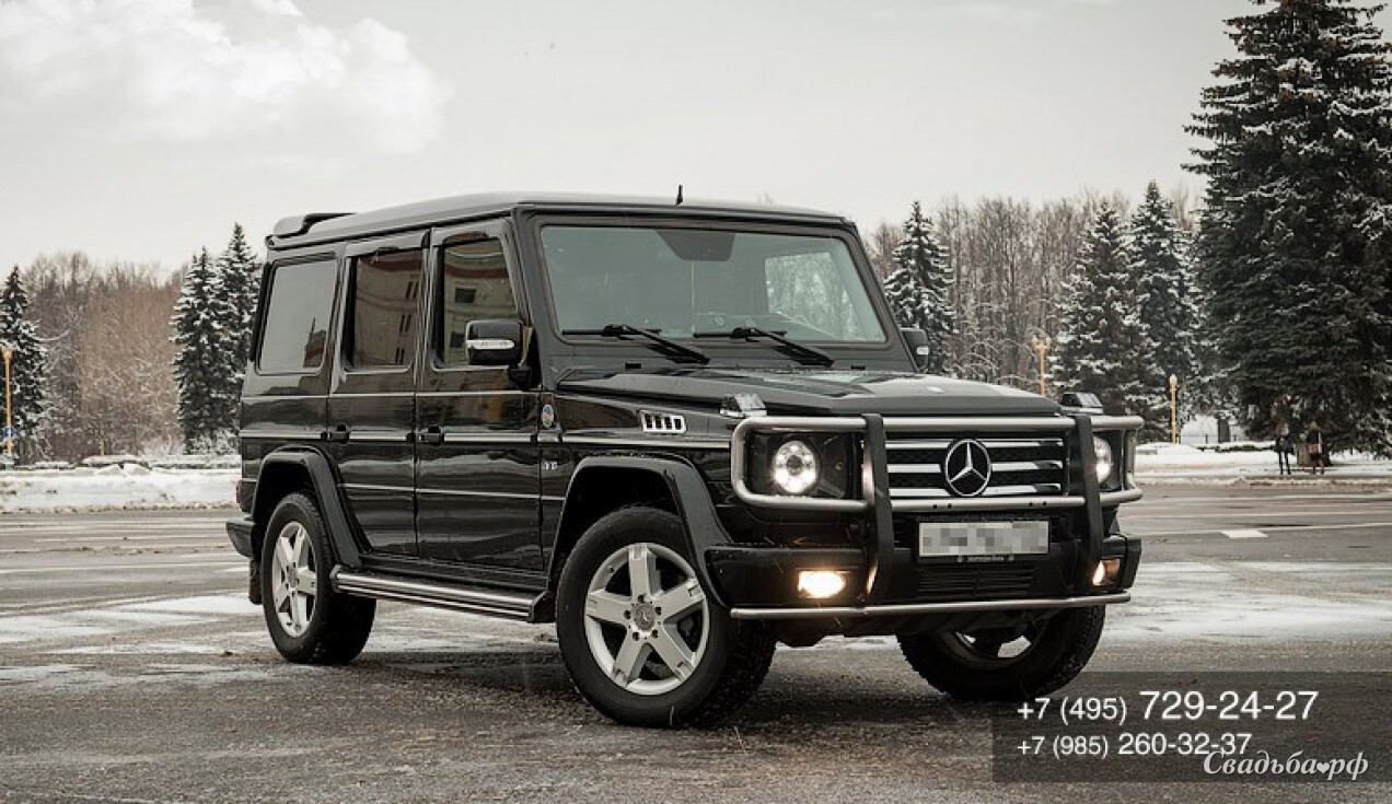 Мощный автомобиль Mercedes-Benz W463 со сверкающим чёрным кузовом и тонированными окнами отличается высокой проходимостью даже по самому страшному бездорожью. Кожаный салон с мягкими сиденьями рассчитан на 4 пассажиров. Современный автомобиль с такими узнаваемыми формами станет изюминкой Вашего свадебного кортежа!
