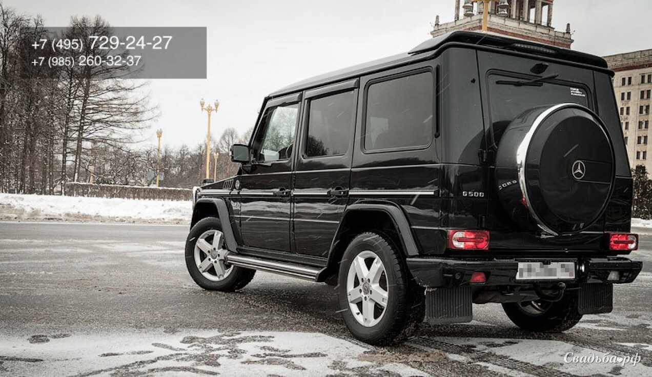 Самым требовательным молодожёнам придётся по душе автомобиль Mercedes-Benz W463. Представленная модель имеет чёрный кузов с хромированными вставками, тонированные окна и достаточно высокий клиренс. Благодаря чему может проехать даже по самому страшному бездорожью. С таким автомобилем Ваш кортеж заметят все!