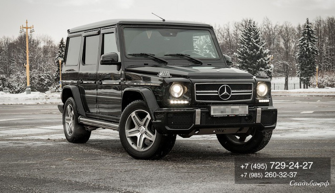 Стильный и практичный автомобиль Mercedes-Benz W463 станет изюминкой Вашего свадебного кортежа. Представленная модель с чёрным кузовом и кожаным салоном, выполненным в тёмных тонах, обладает узнаваемыми во всём мире формами. Этот мощный и надёжный автомобиль рассчитан на комфортное размещение 4 пассажиров.