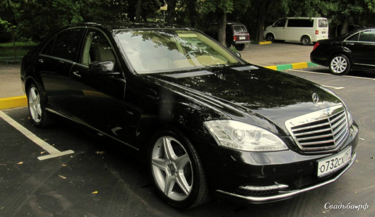 Стильный автомобиль Mercedes-Benz W221 представительского класса станет ярким элементом вашего свадебного кортежа. Насыщенно чёрный кузов дополнен хромированными вставками и тонированными окнами. Комфортабельный салон оборудован всем необходимым для незабываемой поездки: климат-контроль, телевизор, TV, DVD, СD-проигрыватель.