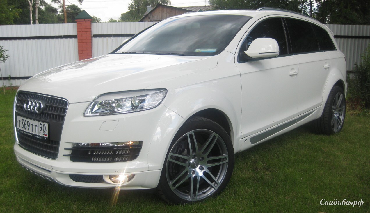 Мощный автомобиль Audi Q7 может похвастаться безупречным белым кузовом, хромированными вставками и тонированными окнами. Просторный кожаный салон выполнен в кофейных тонах и рассчитан на комфортное размещение 4 пассажиров. Представленный автомобиль оборудован всей необходимой техникой для незабываемого путешествия. Побалуйте себя и своих гостей!