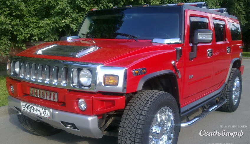 Внедорожник Hummer Н2 ярко красного цвета - олицетворение мощи и уверенности в завтрашнем дне. Салон на 6 персон. Эта модель позволит Вам организовать совершенно роскошную свадьбу. Салон чёрной кожи, аудио система. Главное событие в Вашей жизни несомненно заслуживает только лучшего - что же, мы предлагаем Вам лучшее!
