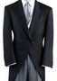 Предложение включает в себя: черный удлиненный пиджак, серые брюки, серый жилет с пластроном.