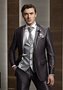 Приталенный мужской костюм на двух пуговицах. В комплект входит Пиджак, брюки, жилет, пластрон, брошка для пластрона.