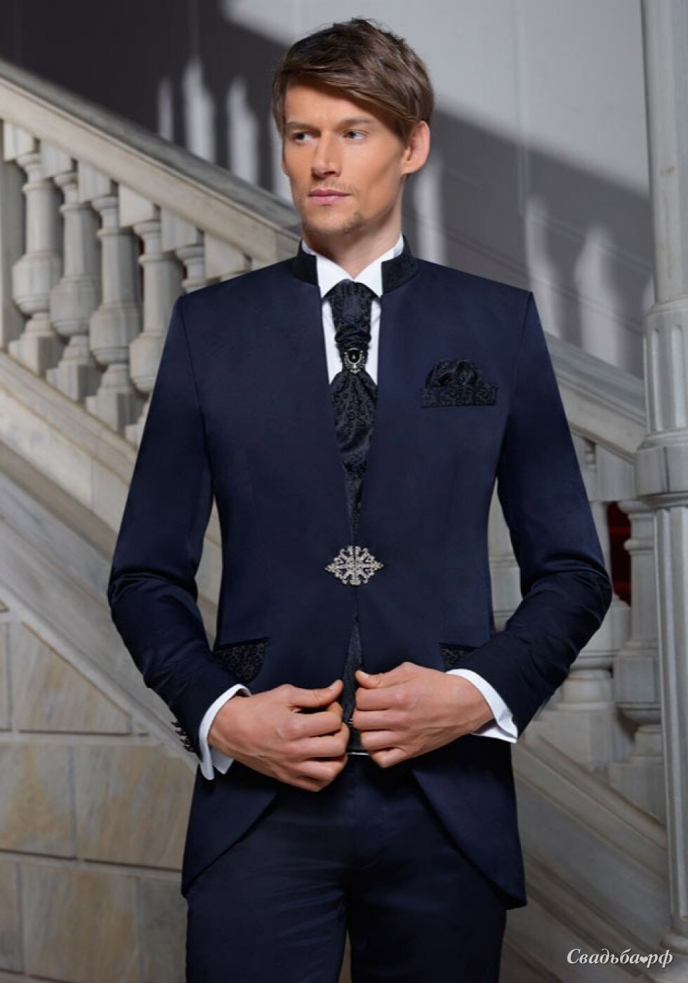 Приталенный молодежный мужской костюм, зауженные брюки. В комплект входит Пиджак, брюки, жилет, пластрон, брошка для пластрона.