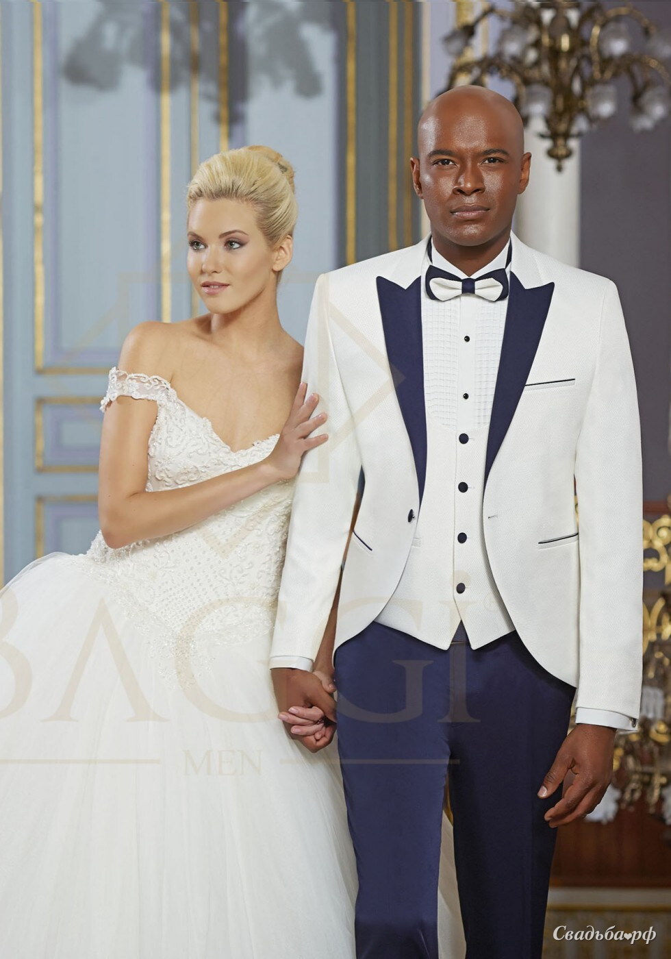 Изюминка данного смокинга в лацкане синего цвета,что придает оригинальность костюму.