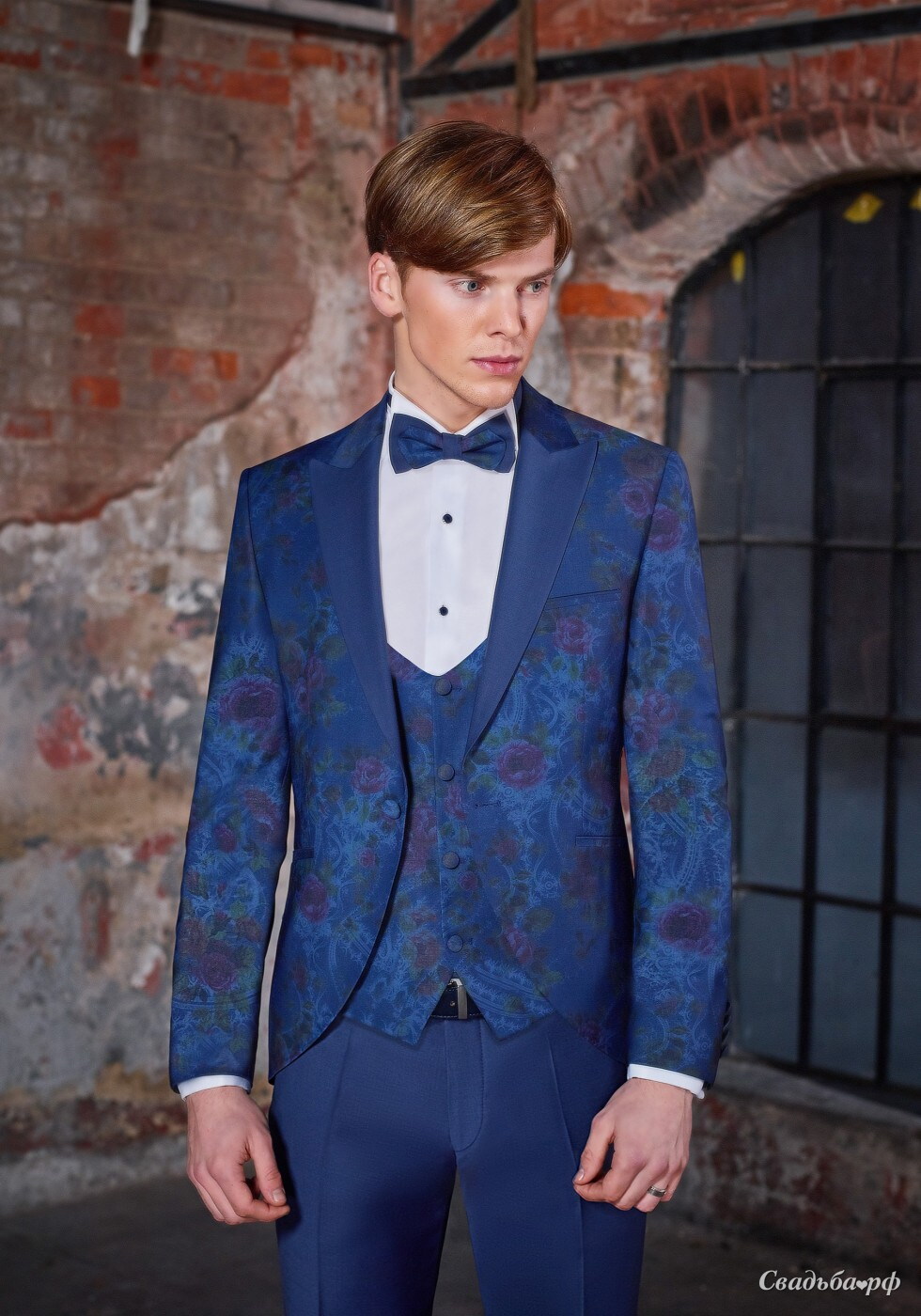 Необычный свадебный костюм тройка из гладкой шерстяной ткани.