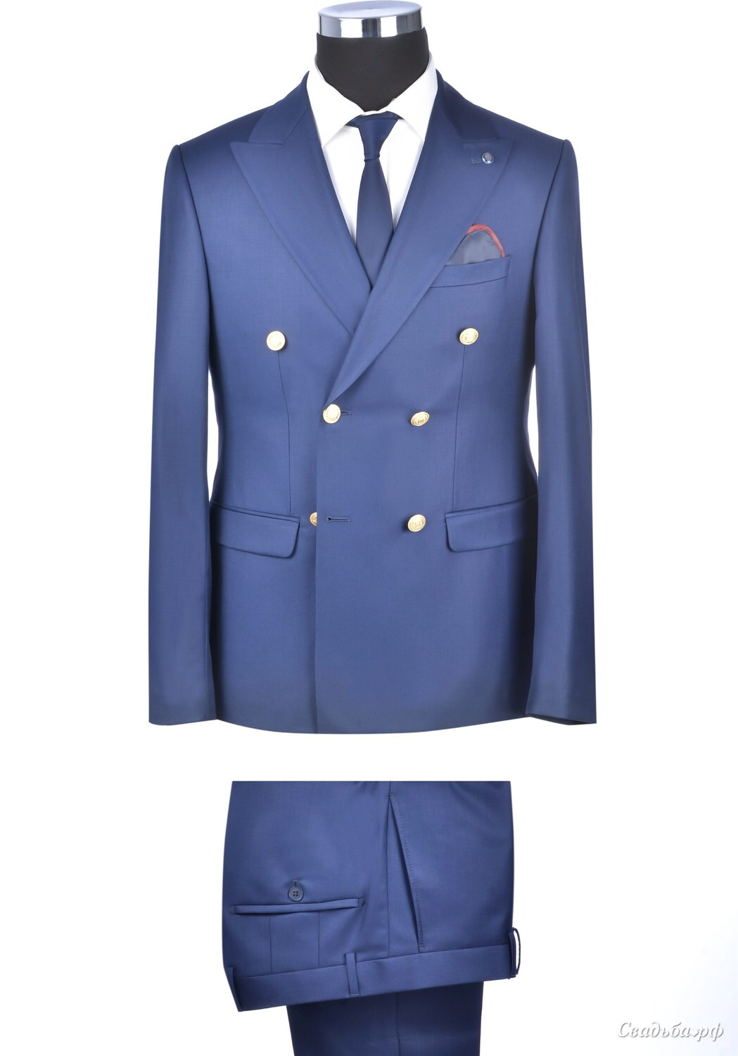Клубный двубортный костюм двойка с золотыми пуговицами. Размеры 46-58.