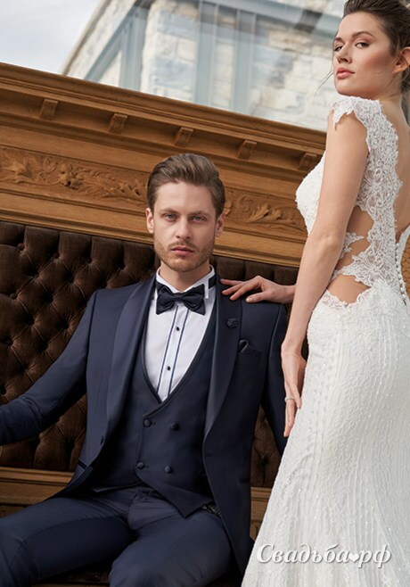 Строгий смокинг для жениха. В комплект входит жилет и бабочка. Размеры 44-64. Цвета: черный, синий, бежевый