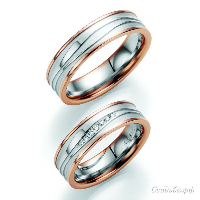 Изысканные обручальные кольца из комбинированного золота для самой влюбленной пары. Неординарное решение дизайнеров не оставляет сомнений: ювелирные украшения останутся в тренде даже через много лет. Сидеть на пальце изделия будут идеально: этому способствует особая форма внутренней части колец. Изумительные кольца для яркого торжества!