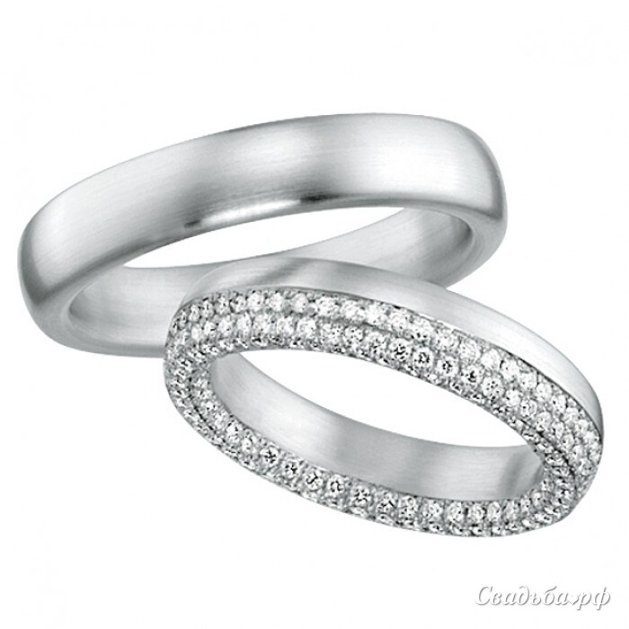 Два обручальных кольца из белого золота станут символом прочного союза, подтверждая серьезность намерений и безупречный вкус своих обладателей. Кольцо для невесты украшено двумя обсыпными дорожками из бриллиантов, огибающих по всей окружности нижнюю часть украшения. Это кольцо никого не оставит равнодушным!