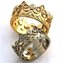 Обручальные колечки для настоящей королевской четы. Изделия выполнены в форме роскошных корон. Одно кольцо сделано из жёлтого золота, второе – из белого. Колечки дополнены сверкающими бриллиантами, можно выбрать и другие камни, например, сапфиры и рубины.