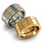 Широкие обручальные кольца из комбинированного металла: белое золото роскошно сочетается с жёлтым. Узор в стиле мозаики в виде пазлов символизирует собой союз двух любящих сердец, ведь пазлы из белого золота на кольце из желтого металла соответствуют таким же деталькам на белом кольце. Ширина изделий до 18 мм.