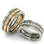 Обручальные колечки с широкими и массивными ободками щедро украшены бриллиантами: драгоценные камни расположены не только с внешней стороны, но и по бокам. Изделия выполнены из белого и жёлтого золота.