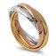 Комбинированное обручальное кольцо подходит тем парам, кто не может выбрать, из какого золота будет выполнено их кольцо. Три ободка из красного, жёлтого и белого золота никого не оставит равнодушным