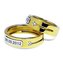 Парные обручальные кольца из жёлтого золота дополнены вставкой из пластины из белого золота с гравировкой даты Вашей свадьбы. Также кольца декорированы бриллиантом и небольшим желобком с одной стороны.