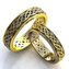 Комбинированные обручальные кольца с тончайшим орнаментом на вращающейся вставке, выполненным техникой филигрань. Изящные колечки понравятся любителям этники и безупречных форм.