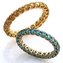 Ослепительно сверкающие кольца выполнены из белого и красного золота. Изящные ободки представляют из себя дорожку из топазов. Кольца полностью состоящие из дорожки сверкающих самоцветов называют кольцами вечности их принято дарить на годовщину или рождение ребенка, но все популярнее становятся использование колец вечности в качестве обручальных.