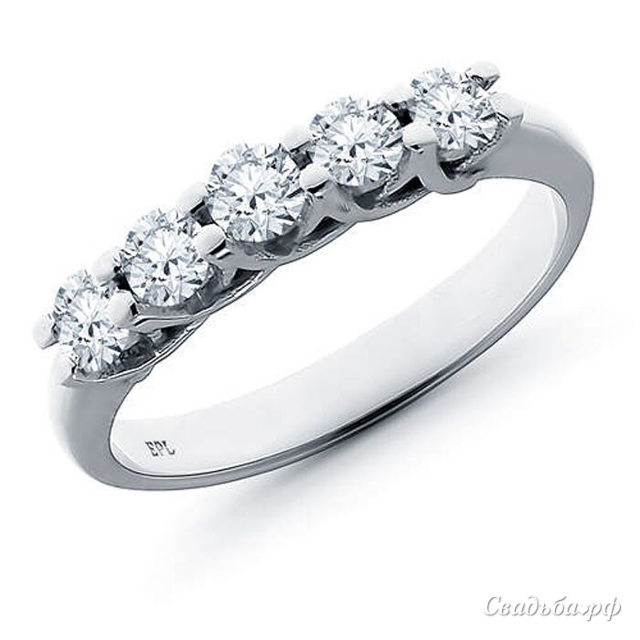 О таком сногсшибательном обручальном колечке мечтает любая женщина! Изящный ободок из благородного белого золота украшен пятью крупными бриллиантами безупречной огранки. Драгоценные камни расположились в тончайшей оправе. Модель смотрится на пальчике очень нежно. Невероятно стильное и романтичное кольцо для Вашей будущей супруги.