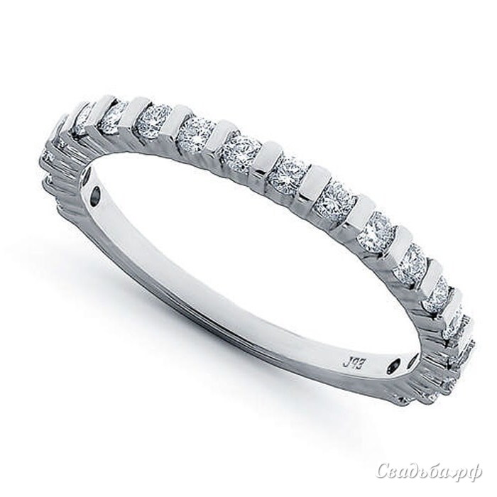 Элегантное колечко из белого золота приковывает к себе все взгляды окружающих. Объёмный ободок дополнен чистейшими бриллиантами. Эта стильная модель отечественного производства придётся по душе самым креативным молодожёнам, предпочитающим современные ювелирные украшения. Обручальное кольцо удобно сидит на пальчике и сочетается с любым нарядом.