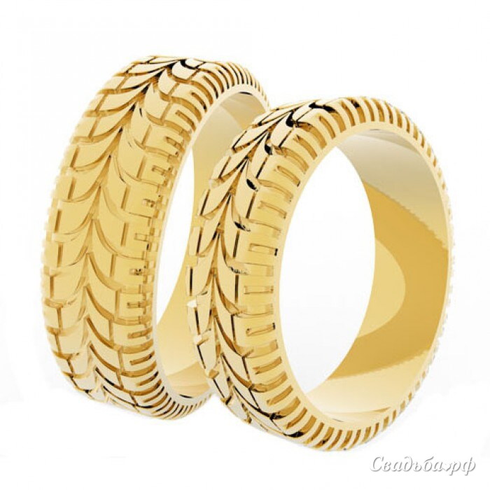 Оригинальные обручальные кольца из жёлтого золота в виде автомобильных шин станут прекрасным символом долгого и счастливого путешествия, в которое отправляется каждая любящая пара в День своего бракосочетания. Узор протекторов на классическом кольце выглядит настолько необычно, что обязательно привлечёт всеобщее внимание и вызовет искренний восторг.Внесем любые изменения в данную модель. Пишите info@skjew.com звоните 8-800-707-75-50.