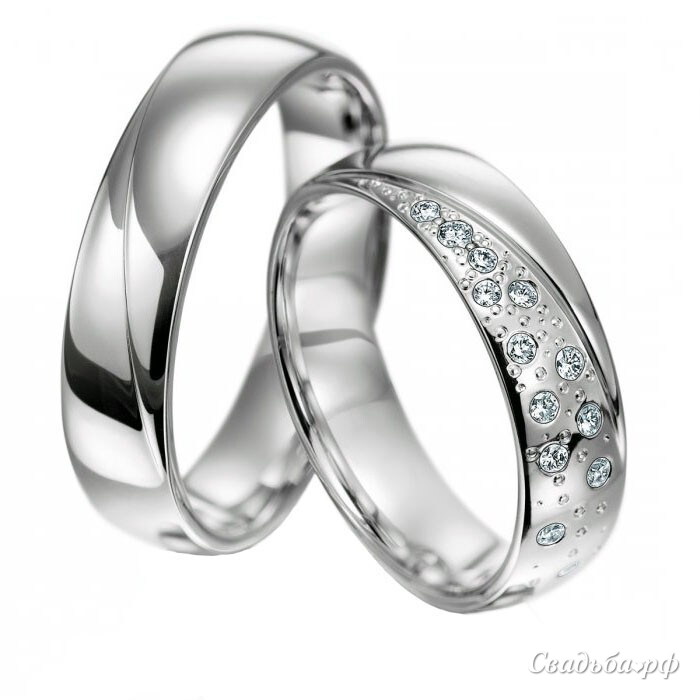 Изысканные обручальные кольца из белого золота станут надёжным талисманом новой семьи. Кольца имеют классическую округлую форму, очень удобную в носке. Мужская модель радует сдержанностью и элегантностью. Женская – поражает изысканностью и роскошью. Передняя часть женского колечка инкрустирована бриллиантами разной величины.Внесем любые изменения в данную модель. Пишите info@skjew.com звоните 8-800-707-75-50.